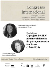 Vanda de Sá e Antónia Fialho Conde irão apresentar a comunicação “O Projeto PASEV: patrimonialização da paisagem sonora em Évora (1540-1910)” no dia 23 de maio.
